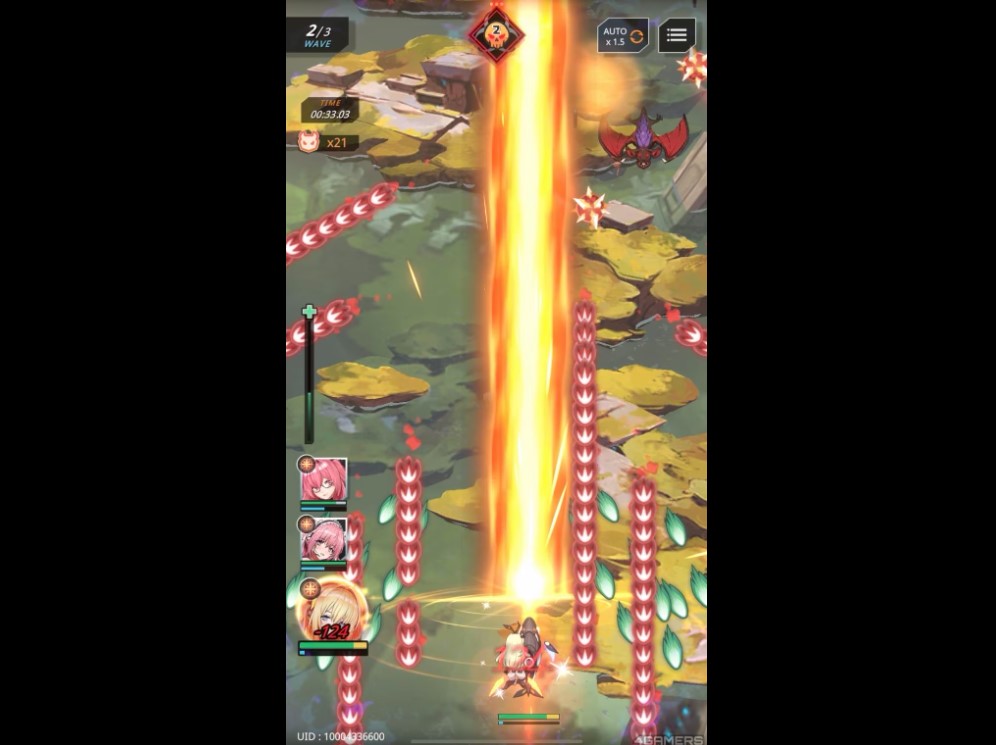 《星欲少女》雖然也是派遣少女出戰敵人的模式,不過遊戲類型並非是RPG則是在手遊中相當少見的縱向捲軸 STG射擊彈幕遊戲,每次最多派三個人組成團隊,前往宇宙與異星種族作戰,雙方使用兵器互相射擊,形成綿密的彈幕……彈幕射擊?那不就是《東方》嗎?事實上,遊戲畫面有時候還真的跟知名的同人奇蹟《東方Project》有點像。不過比起用搖桿或電腦操縱的同類型射擊彈幕遊戲,手機用滑的方式來射擊,玩起來頗為適合縱向捲軸 STG,不過還是需要仔細觀察對方與我方的行動,發動攻擊,才能擊中敵方。